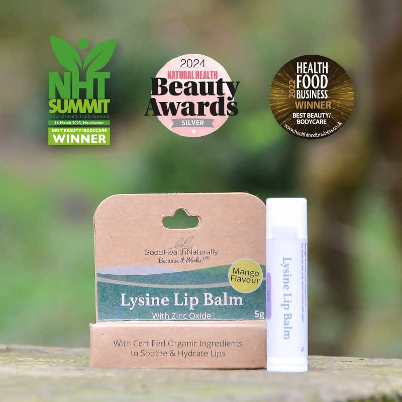 The Lysine Lip Balm helps nourish and hydrate the lips. It is certified organic and combines beneficial ingredients, such as lysine, monolaurin and zinc oxide, with nourishing coconut, olive and jojoba oils. It has a pleasant mango flavour. You can use the Lysine Lip Balm regularly in the same way you would use your normal lip balm or for more targeted support.
